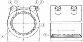 ND INCHPIPEDRUBBER Sealing SleeveMaximum pressureTest PressureDeclinationBOLT INCHW(A)mmmmt(mm)L(mm)L(mm)(Mpa)(Mpa)DegreeBoltNutTorque valuekg20A26.0~28.58 440.86060>1.62.42M868~100.3>25A34 53(80~100)0.3>32A42.7 6015~170.440A48.0~48.6 >65(150~170)0.450A60.0~60.5 821>8044>18~200.665A76.0~76.3 1031.42.1(180~200)1.480A89.0~89.1 11711060M121035~401.5100A114.0~114.3 145(350~400)1.8125A139.80~140.0 1751.511145~552.2150A165.0~165.2 198450~5502.4200A216.0~216.3 2542150841.21.8M14125250A267.0~267.4 3040.81.270~1006.9300A318.0~318.5 35490700~10007.8