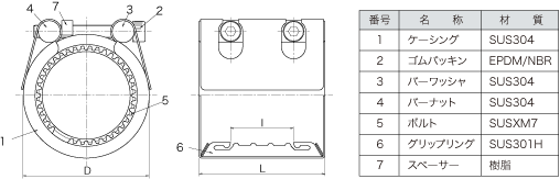 優れた施工性と省力化にお応えするメカニカルグリップ継手 管端部の二次加工を必要としないメカニカルグリップ構造の継手です。ステンレス製の軽量コンパクト設計となっており、省スペース施工が容易です。溶接、ねじ込み、フランジ接続と比較して、MPジョイントは、ボルト2本の締付けで作業完了です。MPジョイントはボルト2本を締付けることでグリップリングがパイプ表面に“食い込み”高い脱管性を実現しています。 |